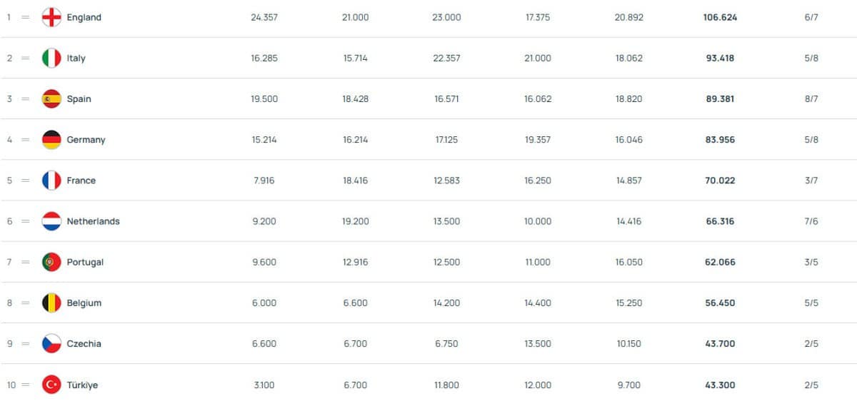 Uefa ülke Puanı Sıralamasda Ooğlu Durum